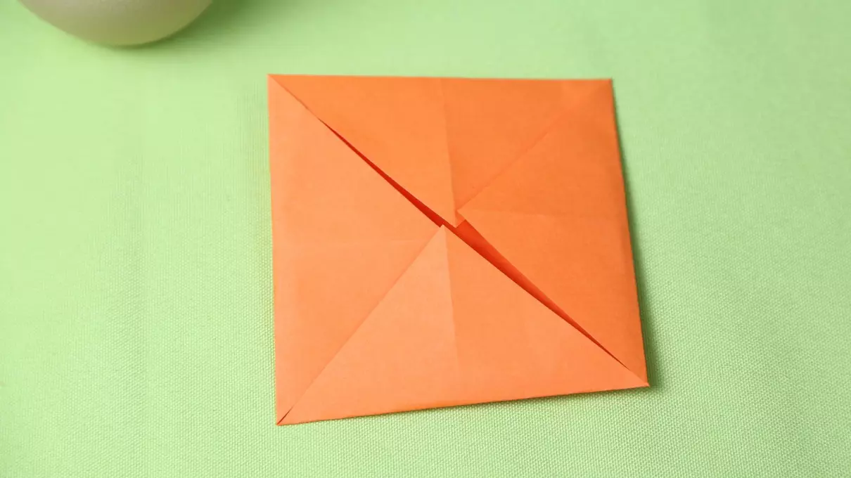 17、然后将第三张15cm正方形纸,对折裁成两半。