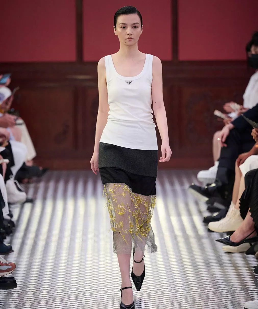 大秀当晚,普拉达邀请超过400位来自音乐、电影、媒体和艺术行业的嘉宾出席,其中包括艺人蔡徐坤和导演贾樟柯。走秀环节同样复刻了米兰两场时装秀中让明星登场的做法,春夏、李易峰、惠英红、黄觉和廖凡等演员均与模特一同走秀。
