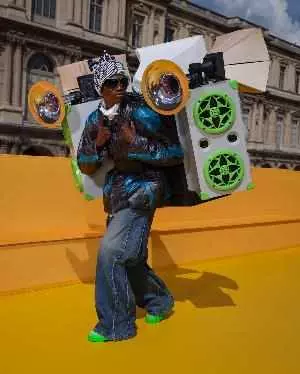 游行庆典是展现路易威登精神的绝佳方式。长久以来,路易威登的管理者们发挥奇思妙想,与全世界观众共情,分享喜悦。在2023年春夏男装秀放大数倍的玩具赛道上,成立于1946年的塔拉哈西市佛罗里达农工大学游行乐队The Marching 100率先出场,引领象征童年梦想的游行队伍大步向前。现场飘扬着各类旗帜,旗帜图案彰显路易威登的准测与价值观,代表超越国界与多样性的全球社群。在音乐的渲染下,游行队伍的配乐与服装本身自由交融:两个SpeakerMan的秀场造型将一些无线扬声器整合到背包中,并连接至秀场音响系统。以上布景展现了声音的兼容并蓄以及扬声器文化的和谐特性,同时呼应路易威登男装成衣工作室成员共同青睐的噪音音乐——工作室每个角落都存放着一台扬声器。
