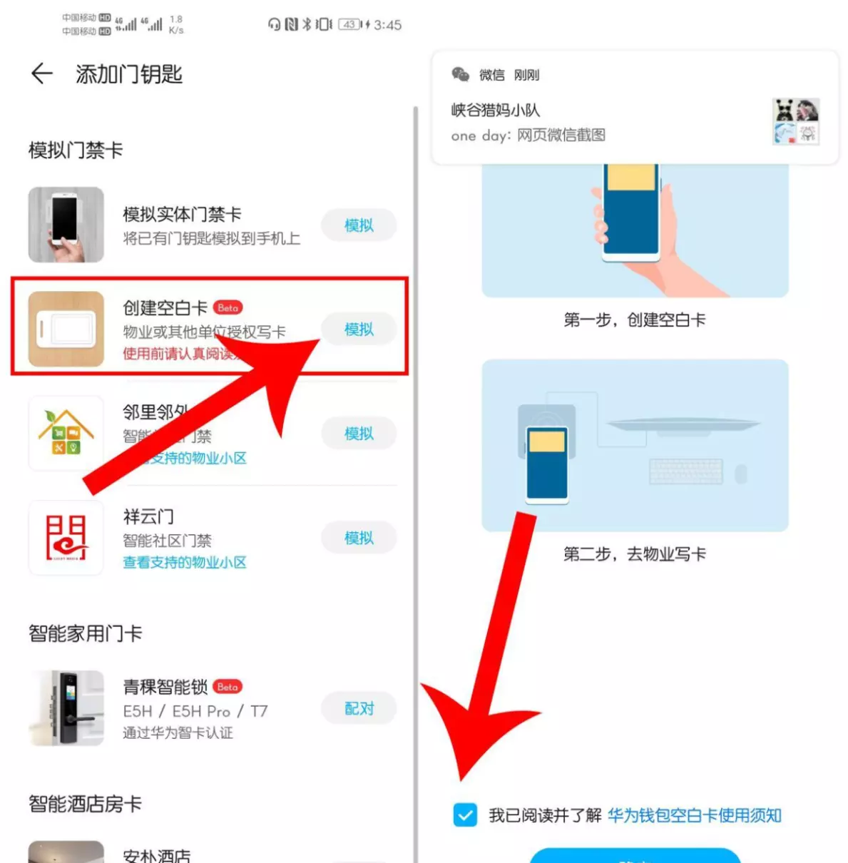 前提说明:模拟门禁卡需要手机支持NFC功能,目前华为带有NFC功能的机型有:华为mate系列、P系列、荣耀V系列以及荣耀数字系列等机型。