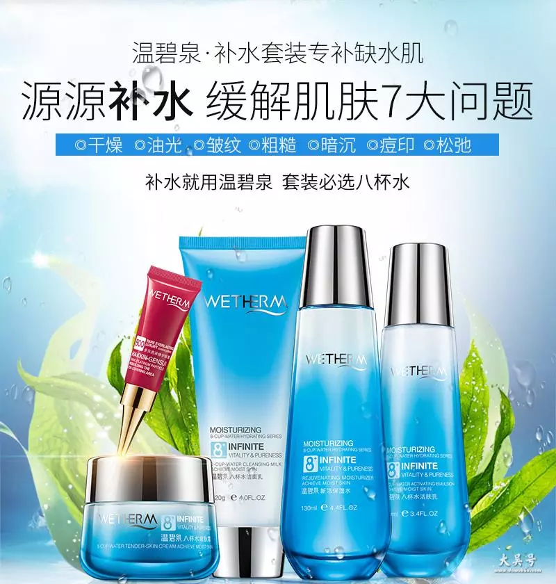 超级好用的国货护肤品?盘点国货护肤品中的那些经典产品之五十七、温碧泉经典产品1、温碧泉八杯水:保湿水的内里瓶盖设计独特,贴心的加了一个小盖子,就算不小心打翻也不用担心会撒出来。嫩肤霜是淡淡的淡蓝色,质地细腻柔滑,滋润度很高我的手一到冬天就很干,这两天用八杯水产品擦完脸后再用多余的擦手,居然也变的润滑不少。