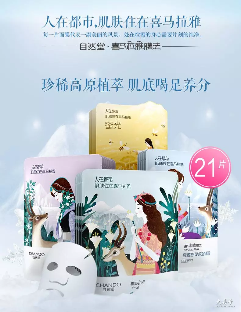 1、自然堂喜马拉雅面膜:很喜欢这款面膜,确实很温和。 水质精华,超好吸收,不黏腻。 面膜有香味。这点个人更偏好无香的,希望添加剂越少越好。所幸香味也是让人舒缓放松的味道,而且没有刺激感,所以用的还是很安心。 敷15-20分钟后取下,因为是免洗的,残余的精华还可以用来涂抹颈部、手肘、膝盖和脚踝。 敷完的皮肤非常润,细白很多。之后我不会用太多的精华,一般就是用黄油或者雅漾保湿面霜之类的锁住水分就好了。一般前夜敷过面膜,第二天皮肤都会好很多,不容易干燥脱皮,妆面效果更好也更持久。