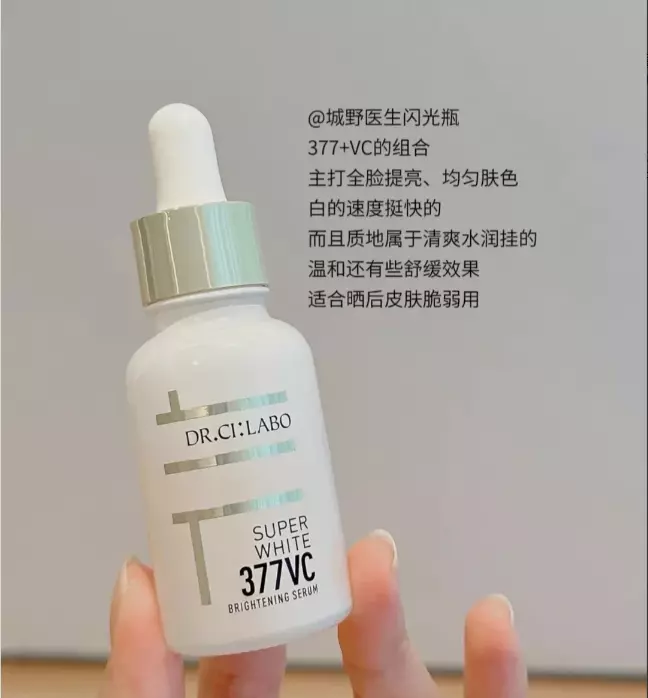 去年377成分的产品大量下架,但丝毫不会影响它的作用,主要是很多377产品没有特证,来看看这款377+VC的精华。