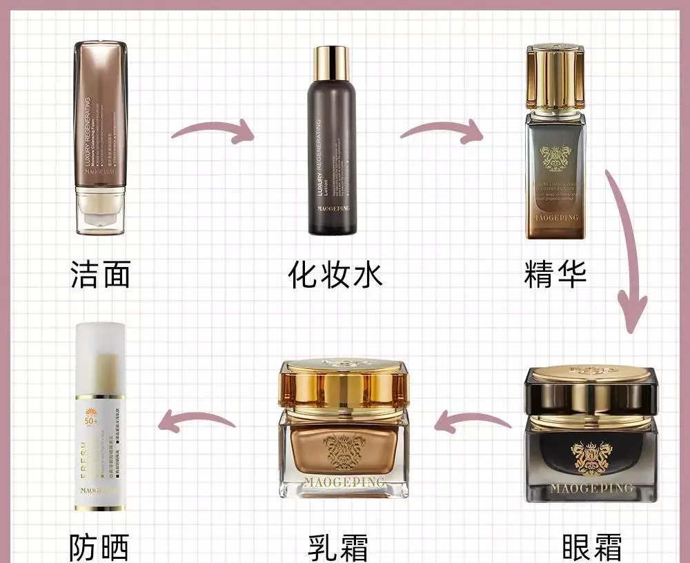 护肤的产品、手法是重要;但顺序用不对,护肤效果大打折扣不说,还会给皮肤带去危机。护肤,其实分为2个部分:晨间护肤和夜间护肤。 基础的晨间护肤顺序洁面→水→眼精华→眼霜→精华→乳液→面霜→防晒基础的夜间护肤顺序洁面→面膜→水→眼精华→眼霜→精华→乳液→面霜晨间护肤,除了让皮肤得到滋养,更是为了让皮肤更好上妆;而夜间护肤主要是为了修护皮肤状态!