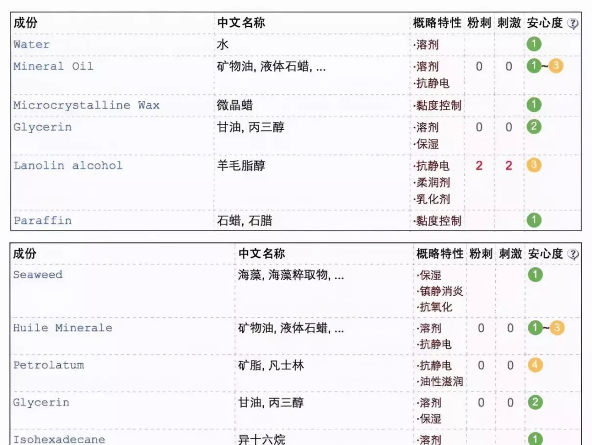 看它们两个的成分表(上为妮维雅小蓝罐,下为海蓝之谜):