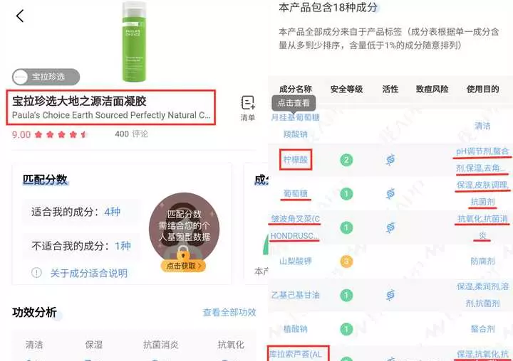 主要的薄弱基因是FLG,这表示小编的肌肤缺乏建立完整屏障的能力,无法抵御有害物质。所以应该避免使用,在真我APP中安全等级大于7的成分!