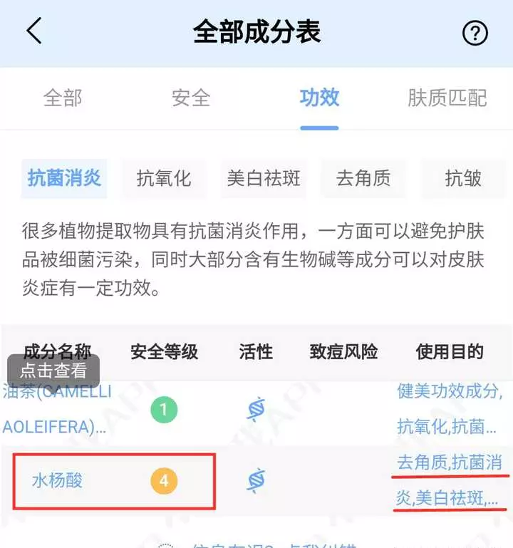 水杨酸的安全等级为4,说明小编这个轻敏肌肤还是可以使用的!