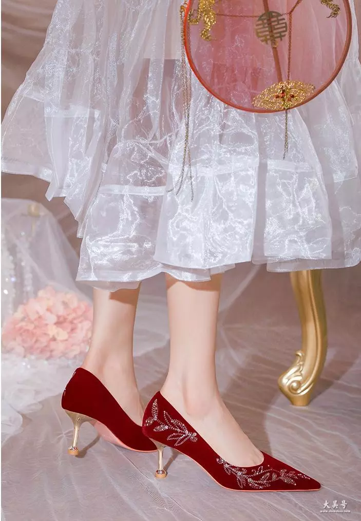 4,中式高跟鞋,也可以搭配汉服的一些汉服鞋、婚鞋,很有国潮范。