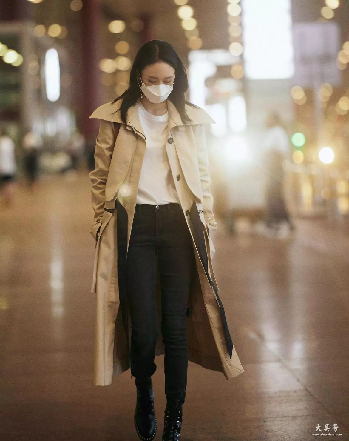 风衣版型比较长,所以很多个子比较矮的女生不太敢尝试。但其实我们可以根据身材来挑选合适的款式,童瑶的身形就比较挺拔,这样的长款风衣被她驾驭得特别棒。大领口的剪裁让整个人气场全开,还可以起到修饰肩部曲线的作用。