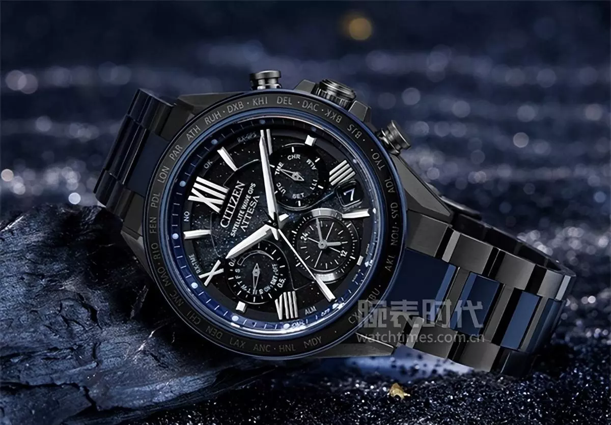 腕表搭载西铁城F950光动能卫星对时机芯,能够接收距离地球两万公里的GPS导航卫星发射的信号校对时间,最快可在3秒内完成时间信号的接收。腕表还拥有万年历、39个时区(27个城市名)、本异地时间转换、24小时计时器、感光亮度等级指示、闹铃、夏令时显示、Perfex性能性能等功能。腕表市场价24,900元。