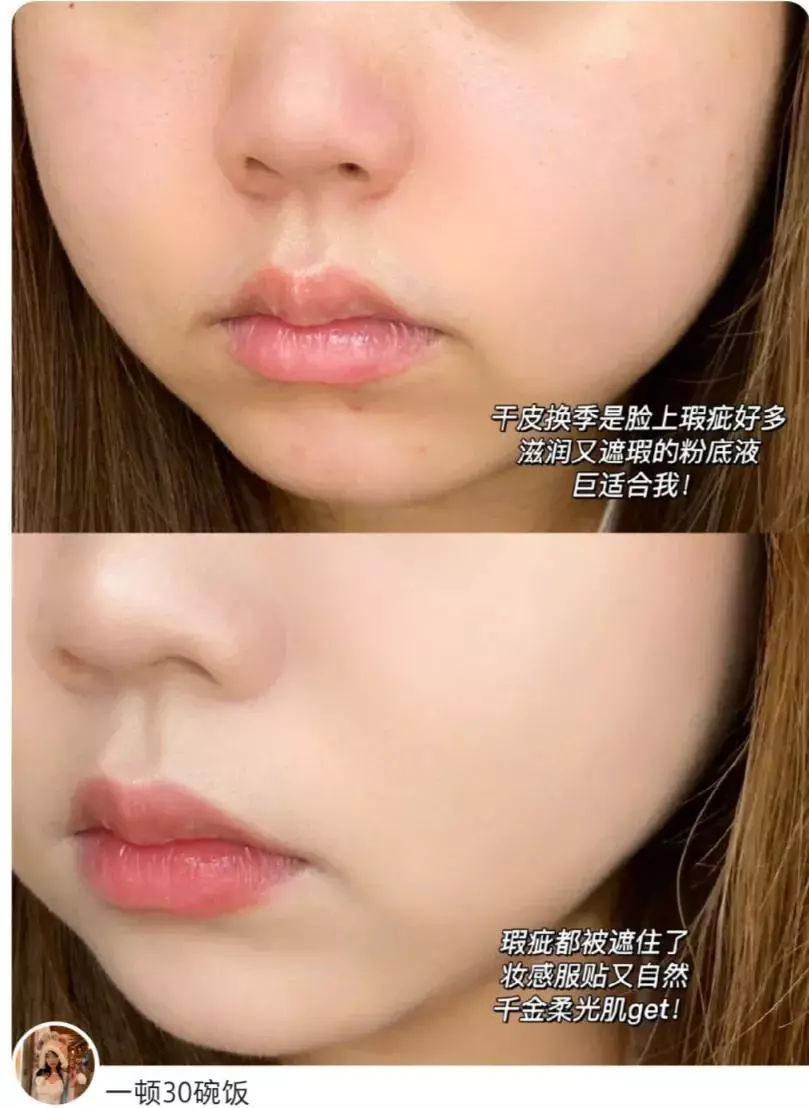 优点:奶油肌妆效很高级,而且非常滋润轻薄,干皮基本不会卡粉