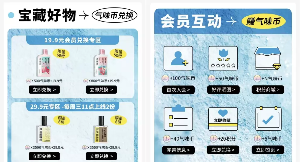 交易成功以及完成任务产生气味币,积攒气味币可兑换限量商品。