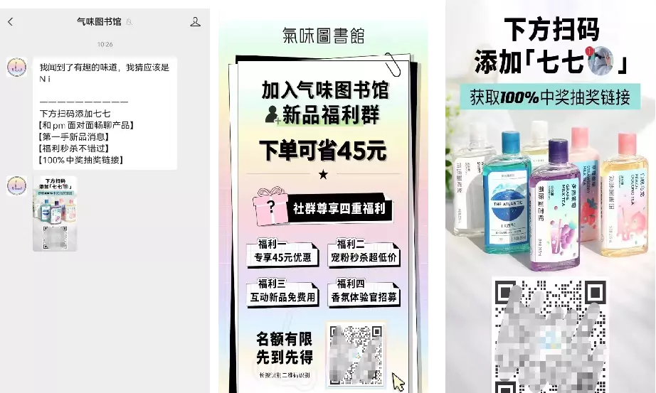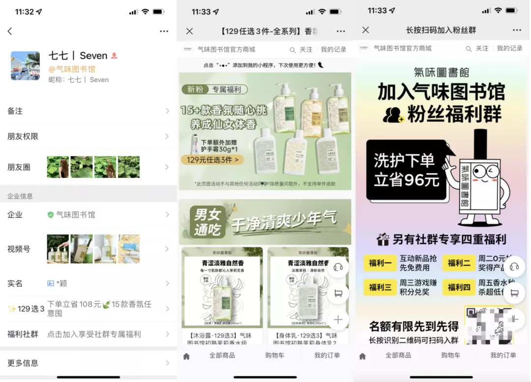 气味图书馆在30多个城市,开了线下门店。顾客离店前会被邀请添加企业微信,将线下用户引流到线上。