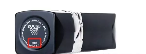 如下图的迪奥烈艳蓝金唇膏,可以看到4码喷码批号“6U01”位于管底位置。