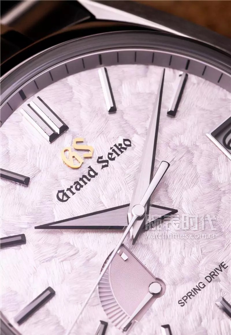 四季腕表中,最受欢迎的当属冬季款深雪SBGA415,乍一看有点像GS大名鼎鼎的雪花面。深雪SBGA415冬季款表盘展现的是冬季深雪覆盖下的纯净清晰景观,金色的GS标识象征阳光,阳光照耀下的冬雪,似乎也多了一丝温暖。同时也有冬雪将逝春将至的意味,充满禅意。精致的扇形动储显示和默默运转的蓝钢秒针,尽显冠蓝狮的美学造诣。
