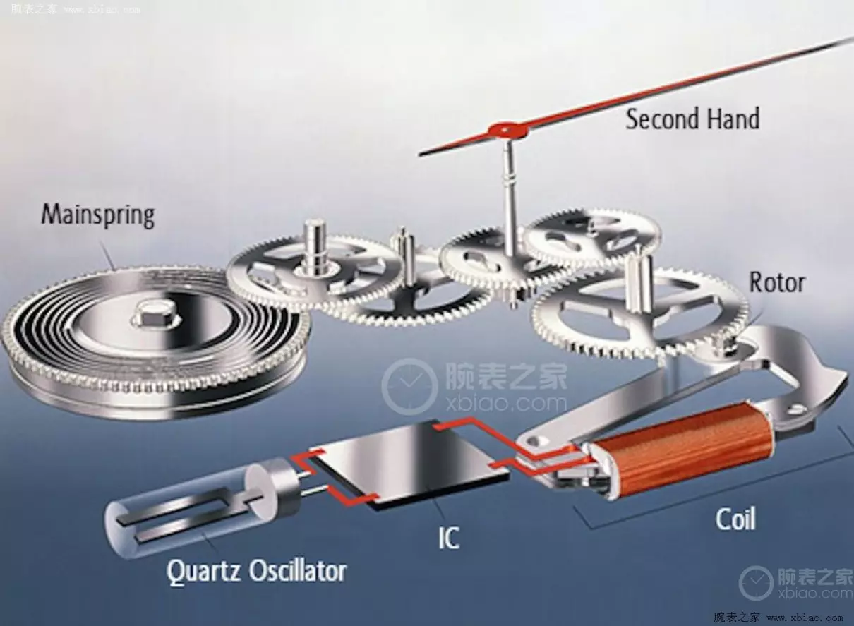 SD机芯远离其实并不复杂,它保留了机械机芯的动力机构,传动机构和指示机构,用同步调速机构代替了擒纵调速机构。由主发条驱动,仅仅依靠主发条和齿轮系统即可获得充足动力,无需电池或外界动力,和传统机械表一样仅需通过旋转表冠或摆动自动陀即可完成上弦。摆砣产生微小的电流,以激活内部的集成电路和石英振荡器,实现了发条上弦。