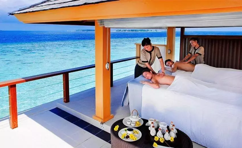 马尔代夫大部分的海岛都设有自己的SPA馆。在伴有精油芳香的房间,欣赏着窗边波光粼粼的海面,享受一次高质量的SPA体验,是一次身心上的双重享受。这里不得不提的便是芙花芬岛的lIME Spa,这座Spa馆完全置于海底,让你在不受任何杂音干扰的同时,还能欣赏到绚烂的海底世界。