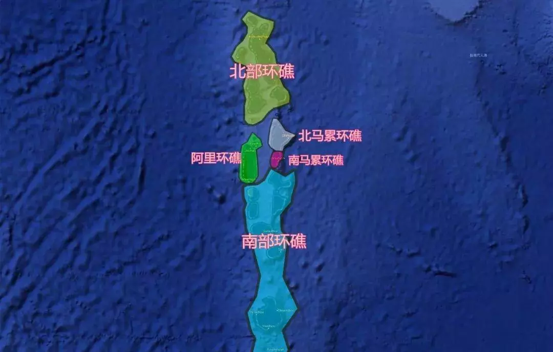 马尔代夫主要可分为5个区域,其中包括北马累环礁、南马累环礁、阿里环礁、北部环礁和南部环礁。