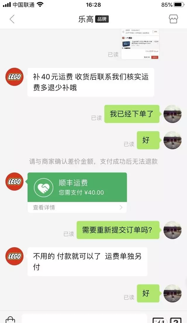 而且还是丹麦进口,保税区直接发货的,百亿补贴真是香啊。不过由于不是很放心,老婆特意和客服人员沟通,客服显示乐高(品牌)的样式,这也让购买踏实了一半。而另一半呢?自然是要到货才能彻底踏实。