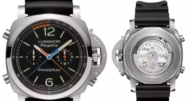 对Cal.P.9100进行相应改动,增加倒计时组件后并将其运用于专为帆船赛而设的PAM00526。表款在功能上不仅融入了帆船比赛中的5分钟倒计时,更将测速仪的单位换成了海上船只标准的航速单位KNOTS,从中再次体现了PANERAI对于实用性的追求。