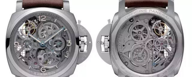 至于大胆的展现陀飞轮之美,PANERAI也是当仁不让。2016年推出的致敬伽利略之作的镂空陀飞轮PAM00578。钛金属表壳材料,并通过直接金属镭射烧结技术将盘面制成网格状,从而在确保表款防水性以及坚固性的前提下,大幅缩减手表重量。