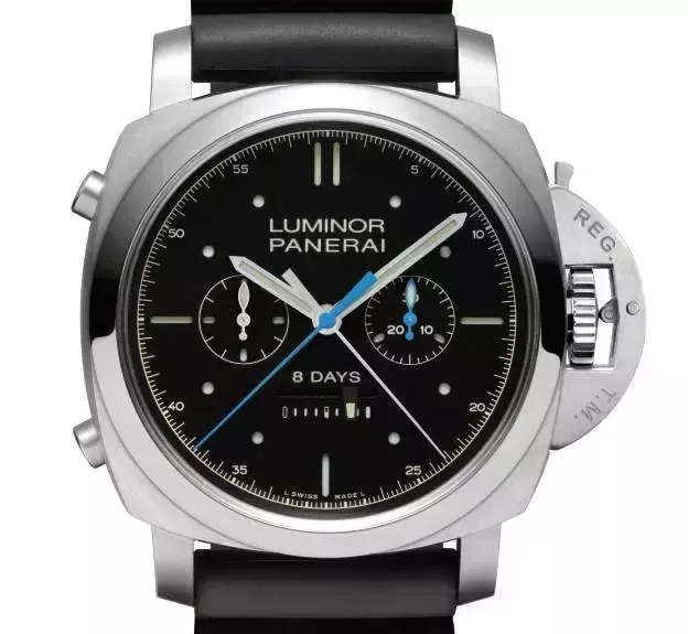 然而,需要指出的是,虽然如今自产是PANERAI计时码表的主旋律,但仍有部分表款会选择外购机芯。如2014年面世的PAM00518(铂金表壳)便是其中之一。