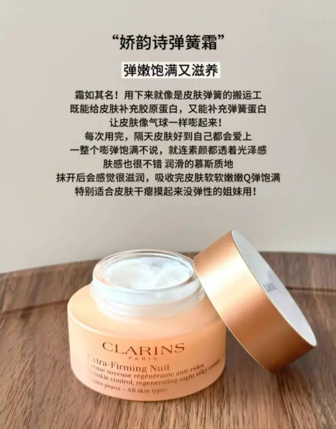 主要作用是弹嫩饱满又滋养,霜如其名。用下来就像是皮肤弹簧的搬运工,既能给皮肤补充胶原蛋白,又能补充弹簧蛋白,让皮肤像气球一样嘭起来。