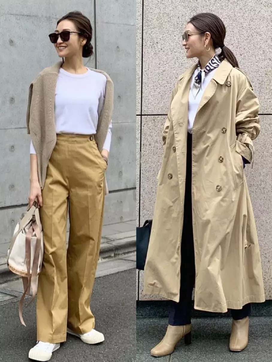 所谓穿衣态度,有时就显得非常重要,比如在下面这两搭配中,运用了轻松的态度来驾驭。针织衫随意搭在肩头,形成自在舒服的状态,同色系的选择让整套搭配更加养眼。如果你也喜欢卡其风衣或卡其裤子,不妨选择这样的搭配吧,肯定可以让你惊喜。▼