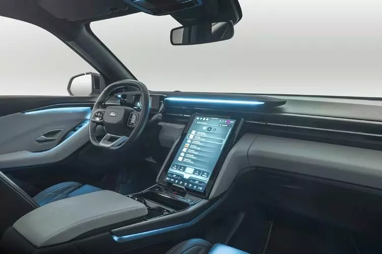 探险者EV的内饰让人眼前一亮,因为它既没有“大众味”,也没有“福特味”,而是采用的全新设计,整体设计布局虽然简洁,但层次感很强,科技感在也有一定保证,其它的不说,至少新鲜感十足,大家说是吧?