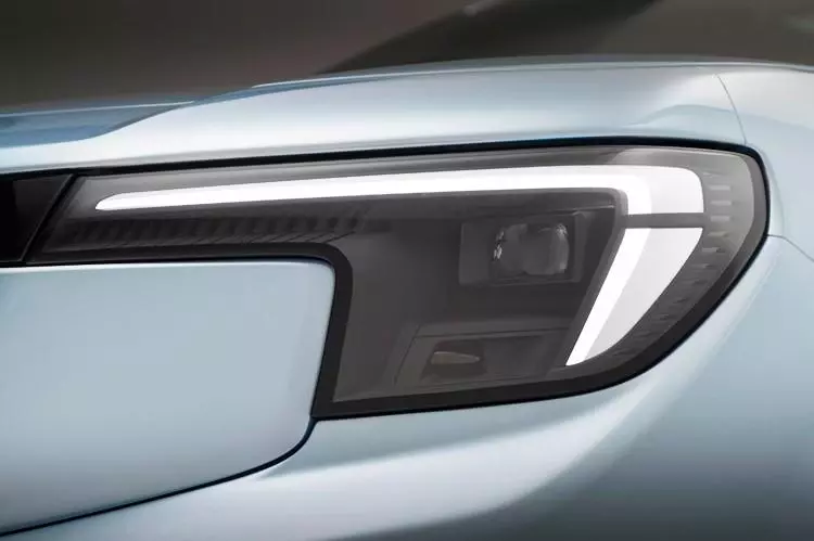 探险者EV虽然悬挂着福特的LOGO,但与我们熟悉的福特车型有很大差别,设计语言完全不同。探险者EV的车头采用了新能源车常用的封闭贯穿式设计,但灯组并非贯穿式,大灯中央是一条黑色的装饰面板,上面还有探险者的英文标识,辨识度很不错。