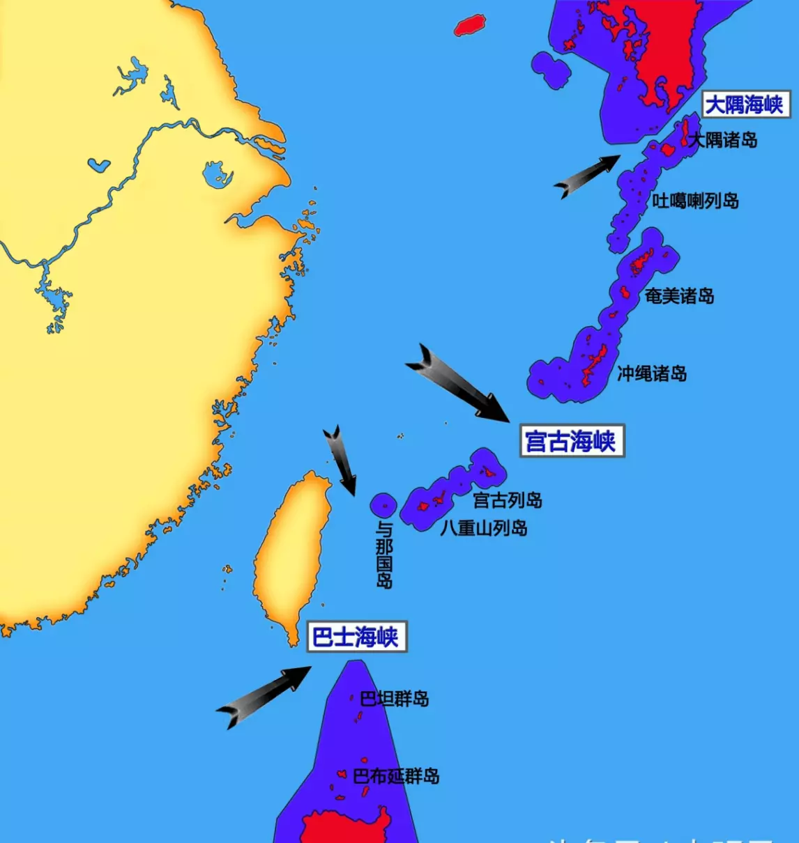中国除通过上述海峡走向远洋深海外,最便捷的通道当属平均宽度达两百余公里的宫古海峡。宫古海峡位居宫古列岛和冲绳诸岛之间,其最窄处尚有209公里。该处属国际水道,舰船和飞行器均拥有航行、飞越的完全自由。