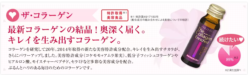 资生堂胶原蛋白系列口服液在2014年就获得了美容专利成分。 一经问世就卖到爆。