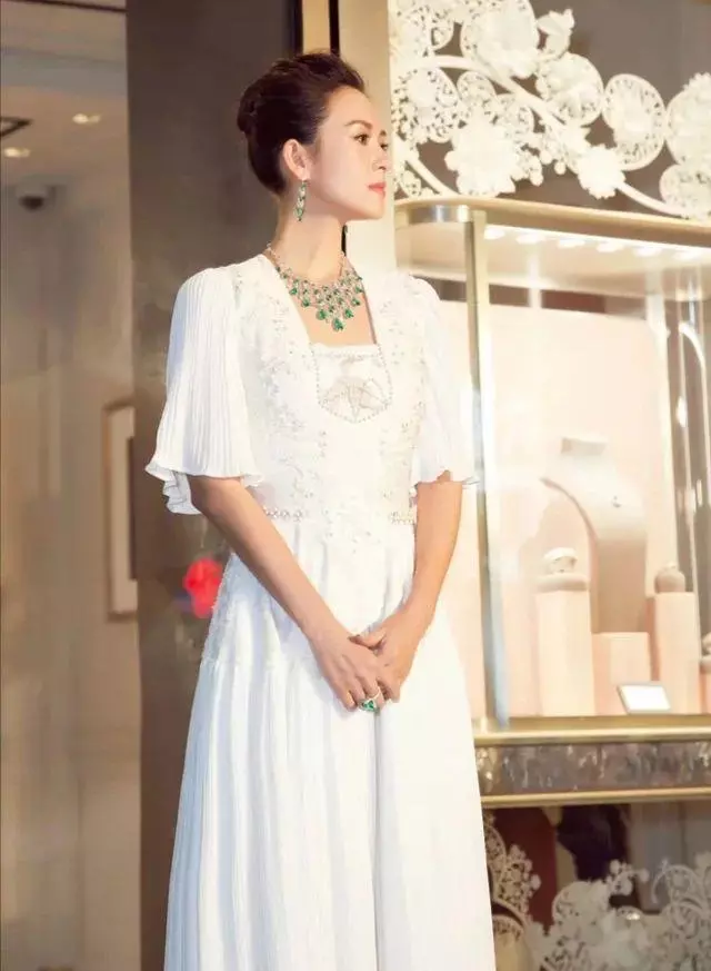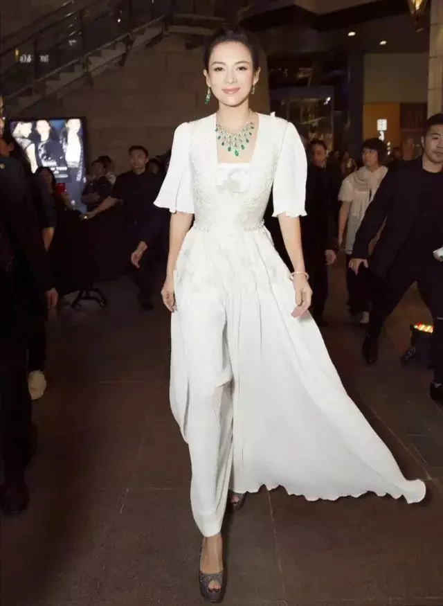 章子怡这身美翻了!白裙配绿宝石项链,仙女裙变长裤设计感满分