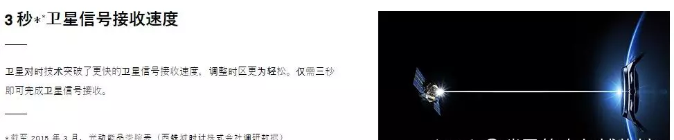 带着Eco-Drive开头的,都是带光动能功能的。而SATELLITE WAVE,指的就是卫星对时了。SATELLITE WAVE会在GPS卫星上接收对时信息,3秒内完成卫星时间同步。