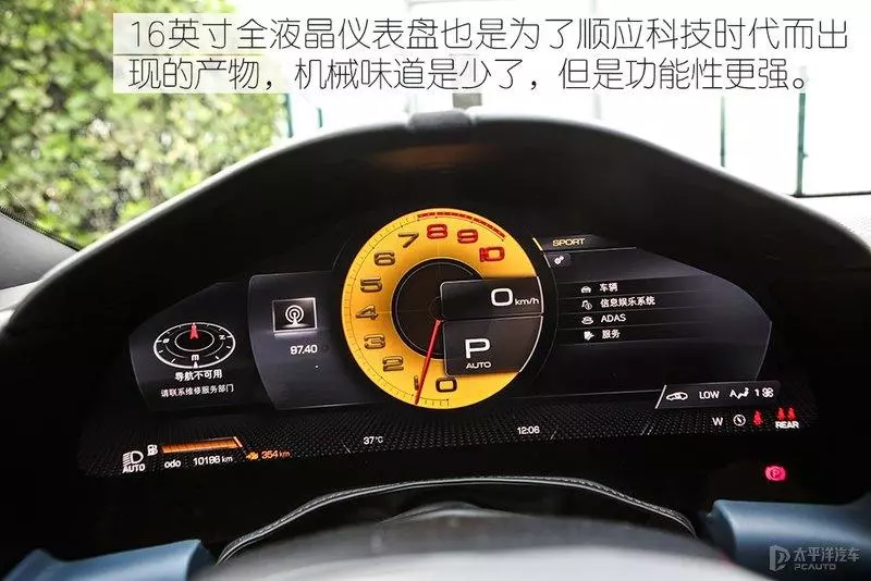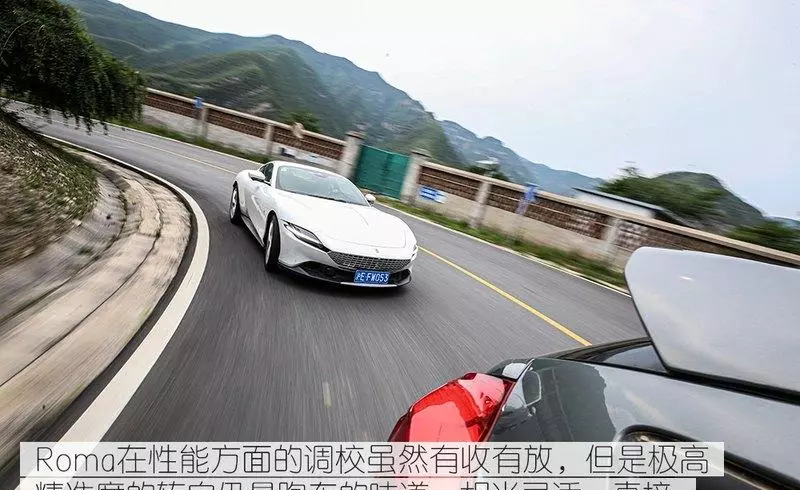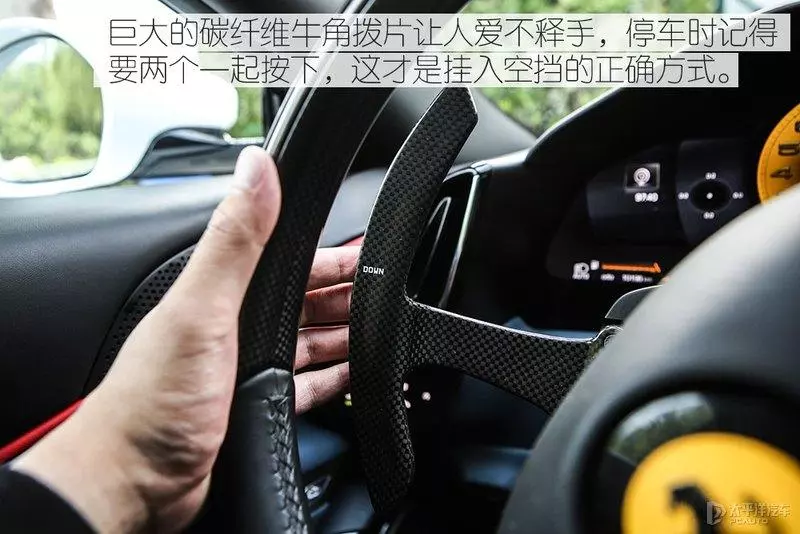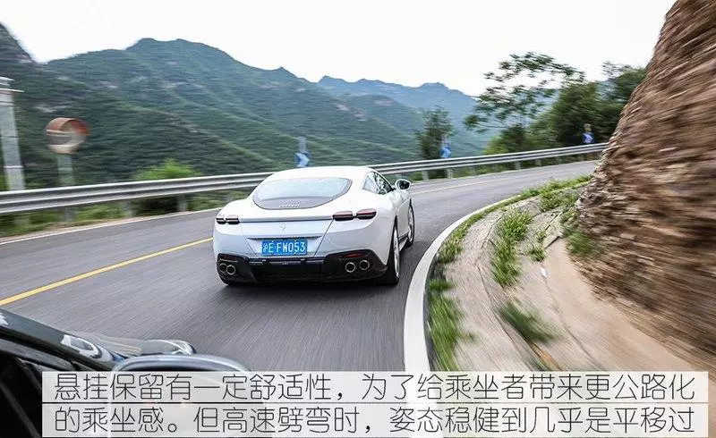 在Comfort模式下,赛车式的油门踏板变得宽容许多,力度还是那么重,这一点是改变不了的,但是整体反馈并不会很敏感,柔和的动力输出让你不愿意去深踩油门。虽然如此,但是你时刻还是可以听到代表性能的“音符”,Roma取消了两个后消音器,这样可以让排气背压降低,再加上排气系统的几何形状经过重新设计,哪怕是超低转速下,油门开度并不大,只要收油你在车内就可以听到类似“开水沸腾”的排气声浪,低沉且雄厚,但是并不高亢。我们都知道每台法拉利引擎均可呈现独具特色的声浪,而Roma上的声线则会给你一种“静中带动”的双向听觉体验,不吵闹,但也绝不寂静。