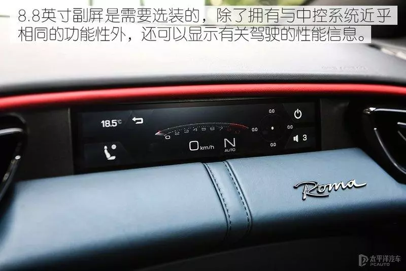 Roma的内饰也是采用了与整车造型格调相契合的“双座舱”设计架构,并且环抱式的造型给人极强的沉浸感,让同处一室的驾驶者和乘客互不打扰,各自关注于自己的格调中。车内还采用了全粒面Frau真皮、Alcantara面料、镀铬铝与碳纤维材质,全都是最精致和最顶级的用料,完美诠释了全新V8 2+硬顶车型的“Dolce Vita”意式奢华理念。