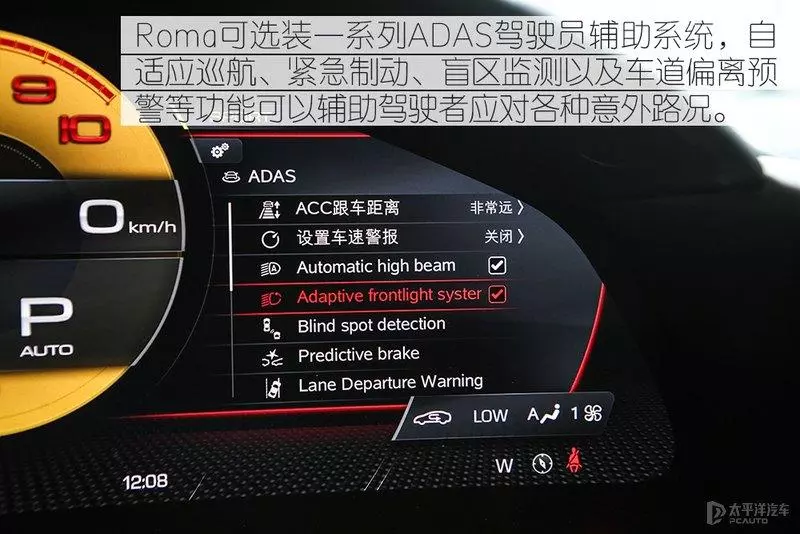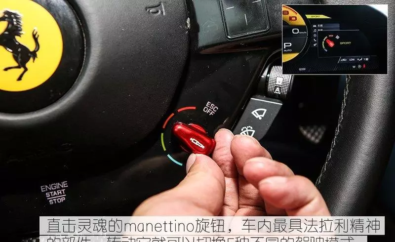 方向盘上红色的manettino旋钮非常具有挑逗性,熟悉法拉利的朋友肯定都知道它是调节驾驶模式用的,Roma共带有Wet、 Comfort、 Sport、 Race和ESC-Off五种模式,同时,还配备SSC6.0版车辆侧滑角控制系统,法拉利动态强化系统(FDE)也是首次在Race模式下启用。