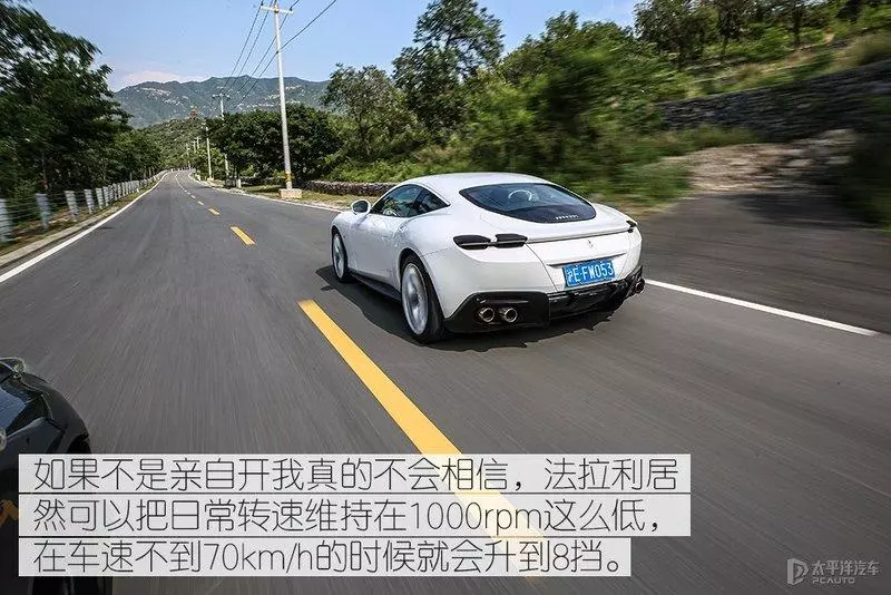 Roma绝对是一款开起来无比舒适的法拉利超跑,惬意满满,转速可以保持出奇的低,在1000rpm上下,也就比怠速稍微高一点点,要知道大部分家用车都无法维持在这么低的转速,就好像创造者们特意封存了它的天性,弱化了它本该一上来就很凶的脾气,而它也很顺从于这种驯服,不会挣扎,不会反叛,只要你温柔对待,它就会很温顺、很乖巧,战马立刻变成一匹家马。