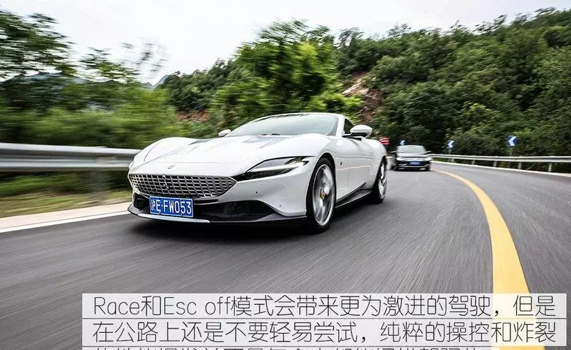 Race模式下将会激活法拉利动态强化系统, 此横向控制系统可以根据即时情况平稳的调节单个车轮或多个车轮的制动压力,再配合上6.0版车辆侧滑角控制系统,驾驶者可以充分享受到在失控边缘游荡所带来更具操控乐趣的激进感受。Esc off模式,我习惯把它成为“生人勿近”模式, Roma将会进入到最为极端的状态,全都靠个人技术,一旦失控,靠我们十几年甚至是几十年对家用车的驾控理解是完全救不回来的,所以在开放道路上轻易不要触碰此模式。虽然内心是恐惧的,但还是希望自己能有机会在封闭场地内经高人指点下体验一下这个最为纯粹、震撼的模式。