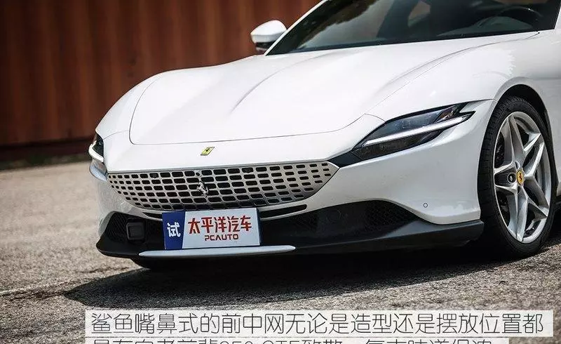 Roma的设计灵感源自20世纪60年代跃马最具传奇色彩的豪华跑车所采用的动感优雅设计理念,鲨鱼鼻式的前中网无论是位置还是造型都在向250 GTE致敬,而以一条水平光带横贯其间的全LED前大灯又在向限量版的Monza SP系列跑车致敬,尾灯并没有采用法拉利经典的圆形,扁扁的造型更加创新、独特,法拉利Roma就是一款结合了现代派轮廓和复古细节的当代艺术品。