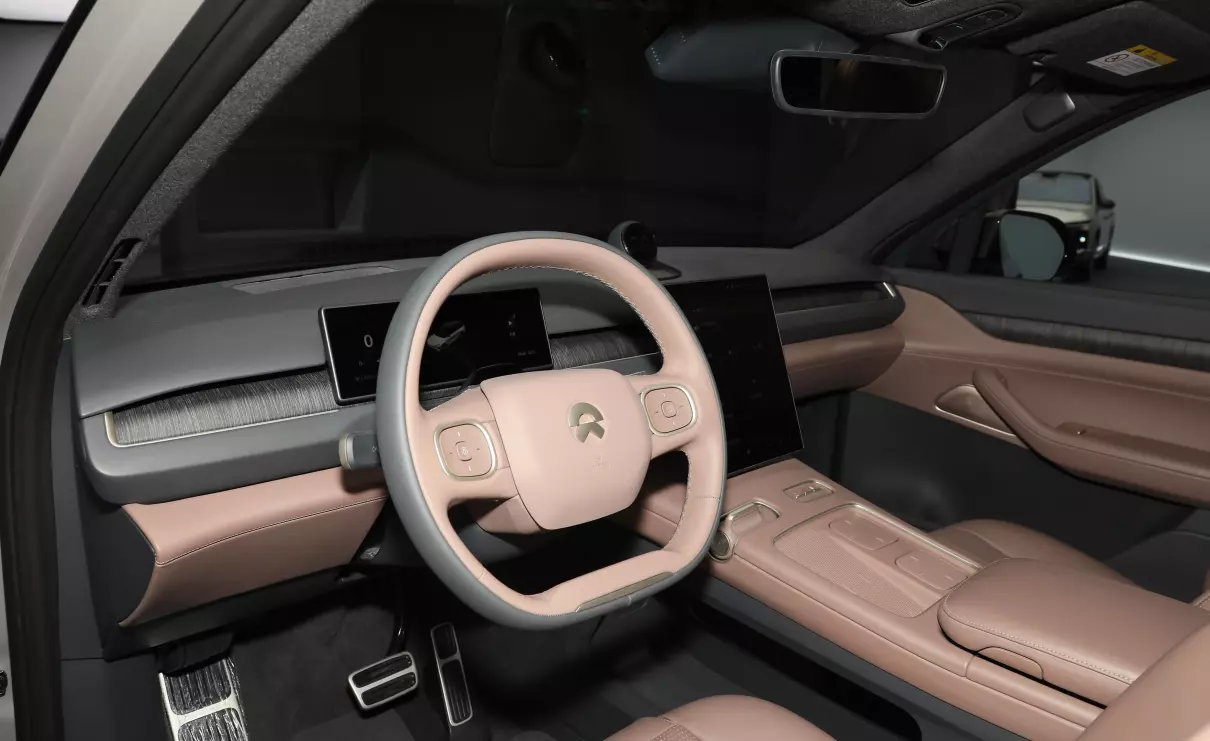 全新ES8的车内依旧延续了第二起居室的概念,并在多处使用了可再生藤木材料以及生物基合成皮,也用柔光金装饰件取代了镀铬装饰。同时,全新ES8车内仅配备了一块悬浮式中控屏和一块全液晶仪表,可支持AR/VR视频输出,还标配N-BOX娱乐主机。
