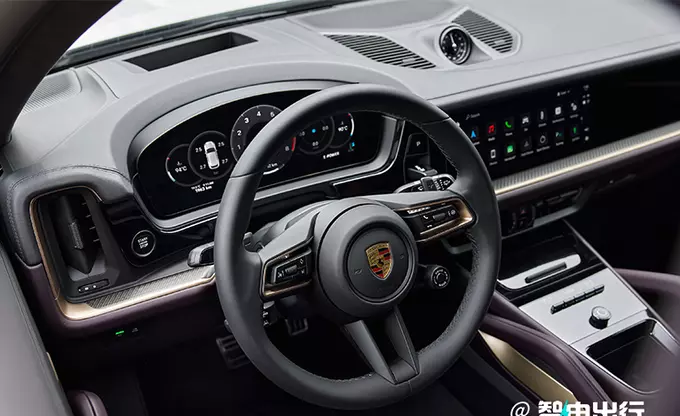 新款Cayenne S E-Hybrid系列车型内饰沿用最新的12.6英寸液晶仪表和12.3英寸中控屏设计,提供选装10.9英寸副驾屏幕以及10.1英寸后排屏幕。新车标配Sport Chrono组件、不锈钢踏板、银色Diamar内饰组件、BOSE环绕声音响系统等配置。