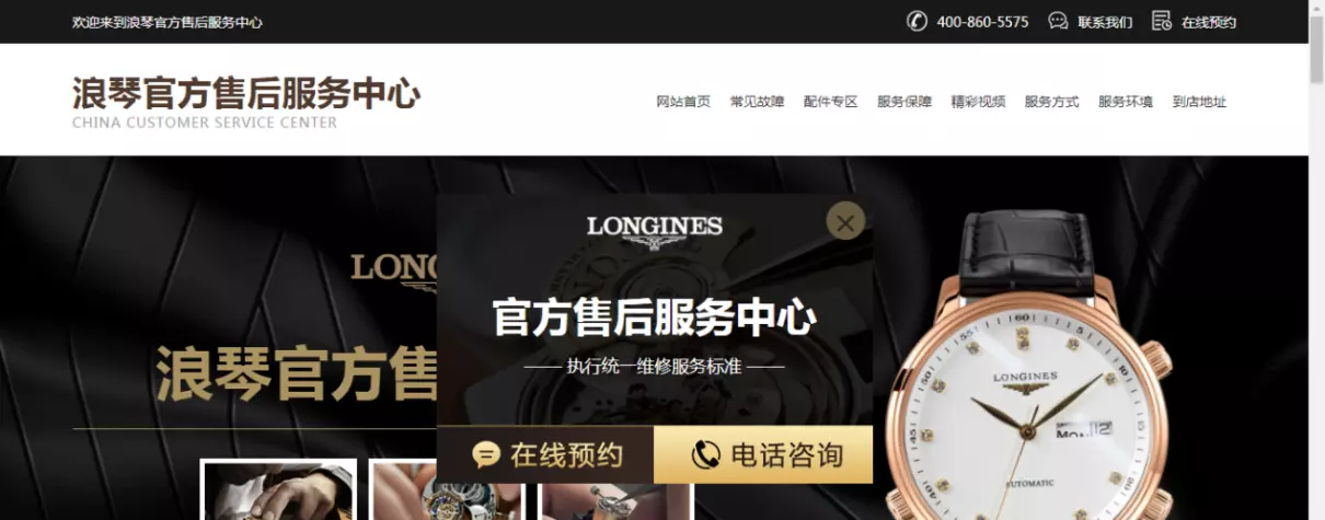 这种打着品牌擦边球的企业只有亨X达一家吗?很显然并不是,另一个直接显示为“浪琴官方售后服务中心”的网站,做得更精美和高大上,连品牌色调都模仿得很到位,根据网站上的电话我们查询到该网站属于北京精时X达钟表有限公司,百度搜索精时X达,公司的信息非常的齐全,打开官网,网页的风格和上文提到的各种所谓的品牌维修中心风格很相像。