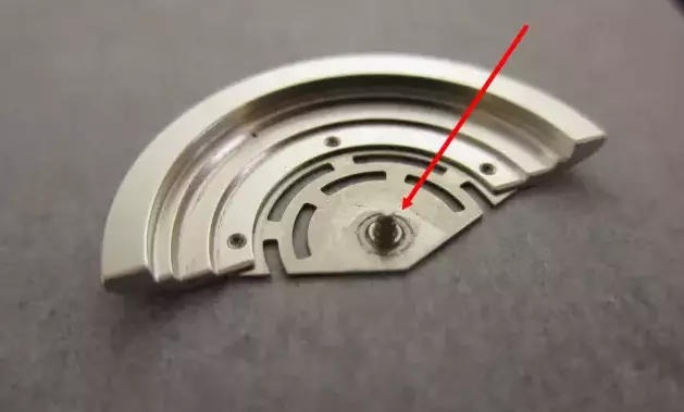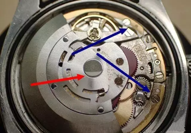 原因在于,劳力士在这里使用的是一根单一的摆陀轴。如果长期使用.顺滑油干涸,加大中心轴摩擦产生偏移,再加上自动陀就只有一根中心轴支撑,受到震动时就会导致自动陀檫边,损坏机芯。擦边轻则影响上链效率,重则磨损镀层,影响机芯美观,更为甚者,碎屑散落在机芯里面,影响走时。