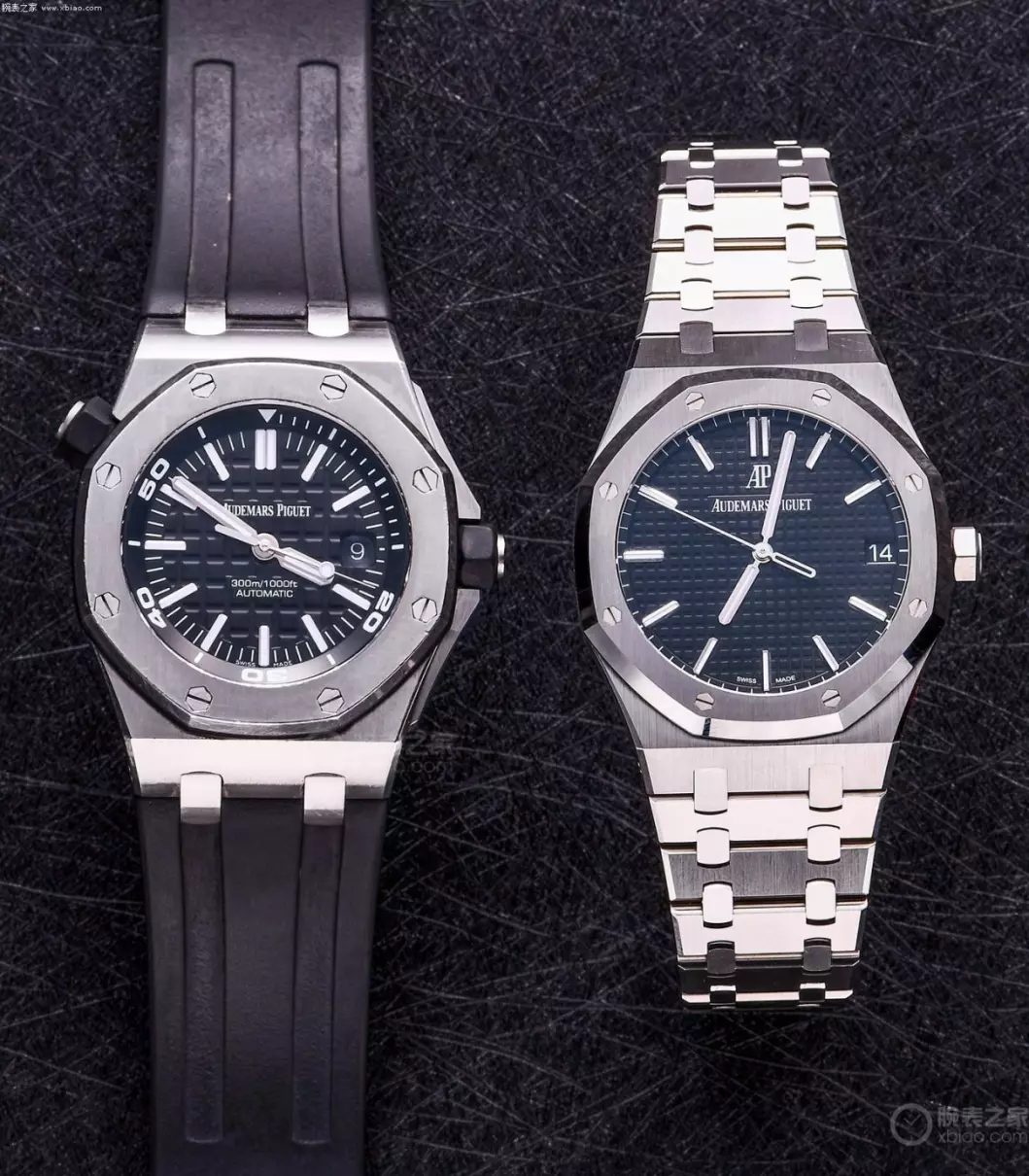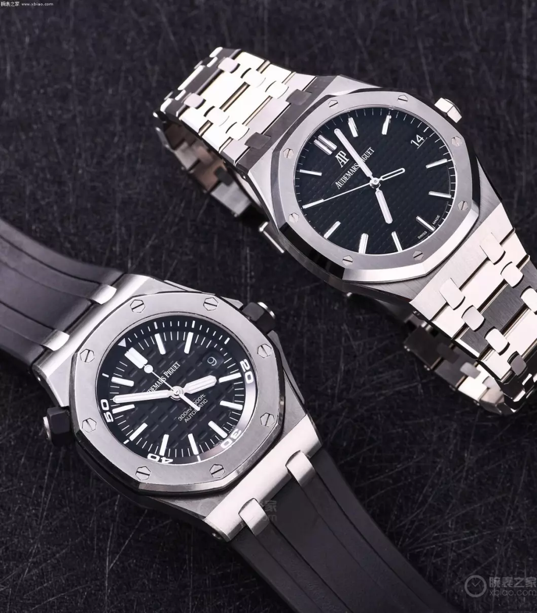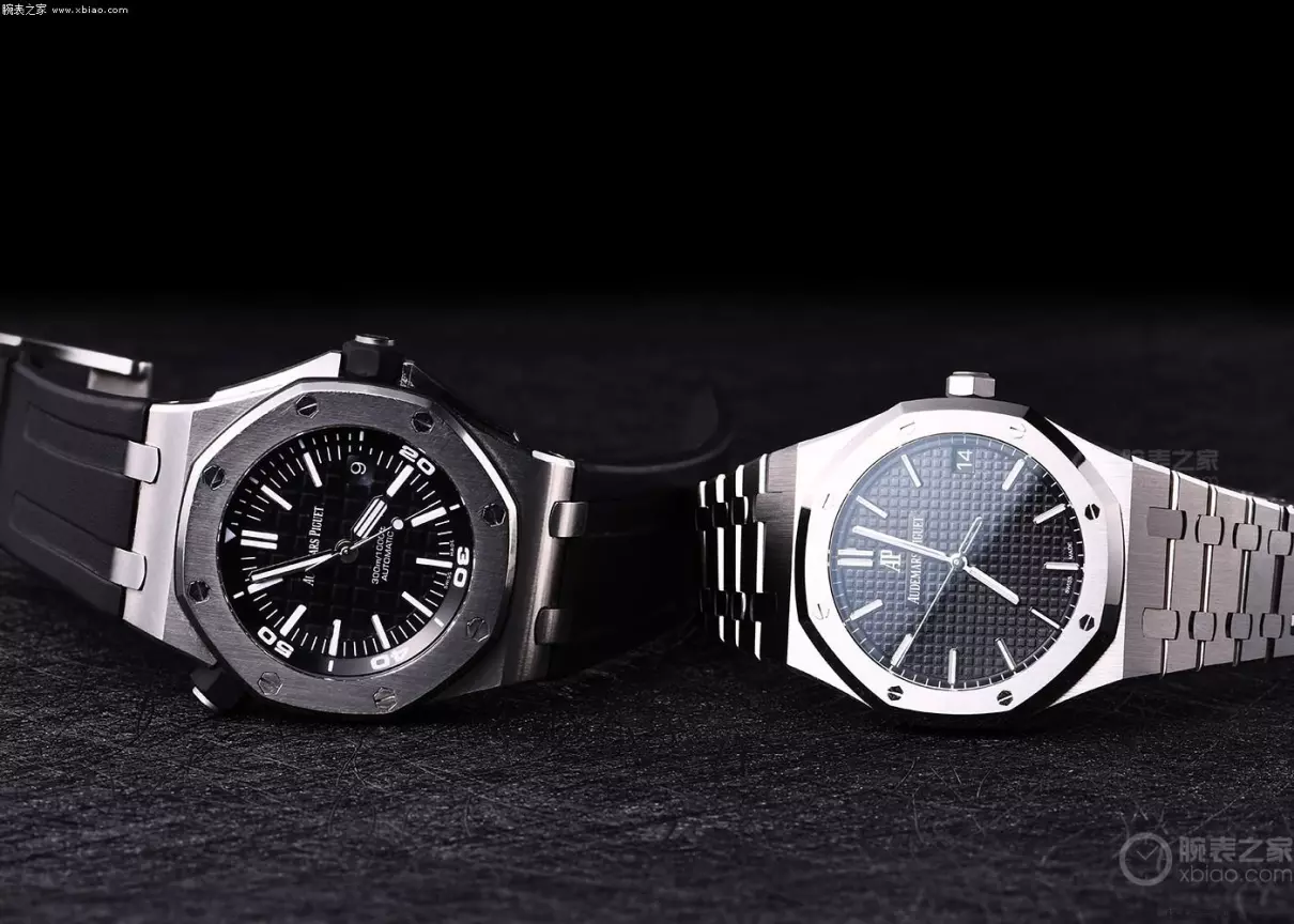 爱彼皇家橡树离岸型潜水表15710(左)和皇家橡树15500(右)。