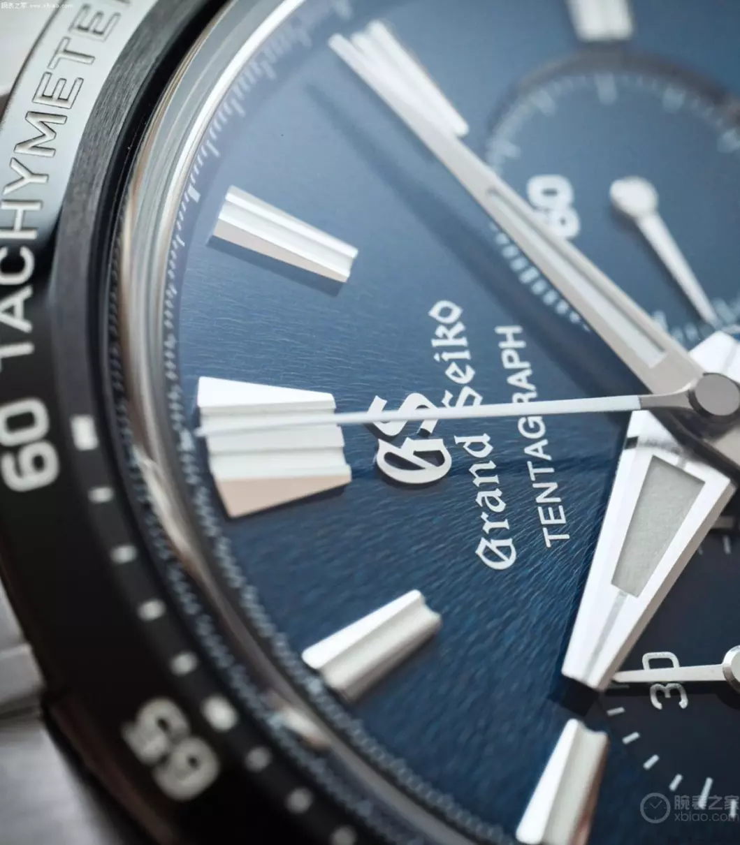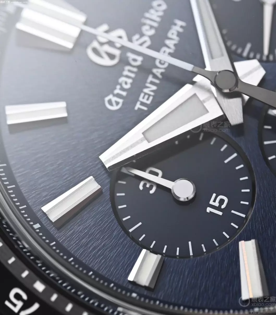 冠蓝狮在Tentagraph上,并没有沿用过去Spring Drive计时表的外观设计,而是使用了新一代外观。回归到常规计时表3、6、9点位小表盘,日历在4点位的布局方式。