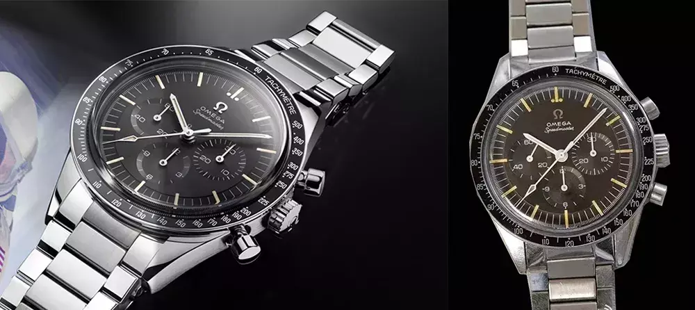 欧米茄1957超霸复刻腕表(左)及1957年发布的原版超霸1957(右)