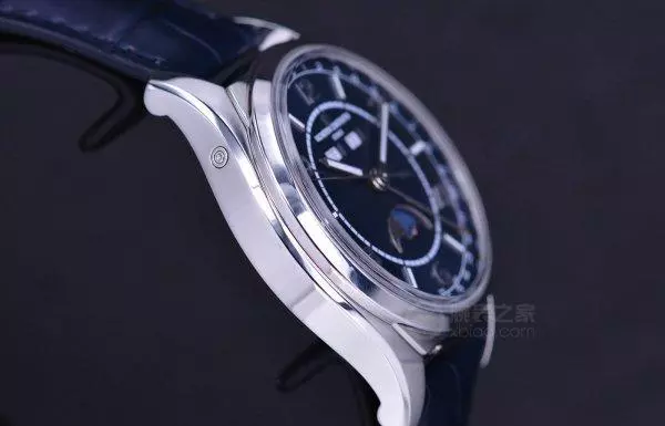 江诗丹顿又在伍陆之型系列全历月相腕表多添了一个蓝盘表款,整体的表款设计和去年的表款一脉相承,包括马耳他十字造型表耳、分区表盘、嵌入式表冠等等,但是同时也做出了一些调整,比如指示日期的蓝色指针改成了银色指针,月相显示盘外缘也做出了一些变化。江诗丹顿伍陆之型系列将现代优雅以及休闲精致演绎得十分出色,适合不同场合佩戴。