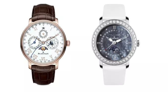 宝珀Villeret系列红金中华年历腕表(左)女装系列月亮美人全历月相腕表(右)