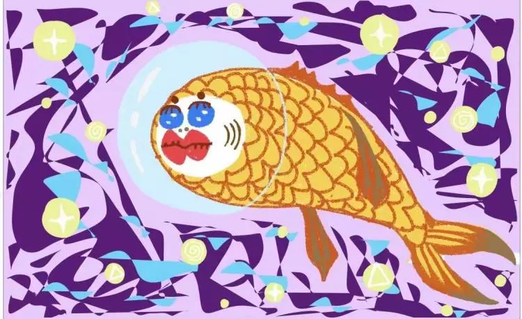 阿萨收到了来自房东的一幅印制版画,才发现自己成了房东作品里的一条人鱼。/一休图